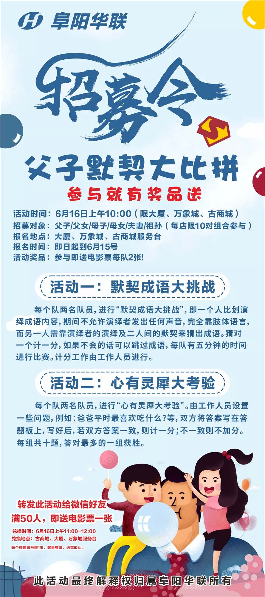 【阜陽(yáng)華聯(lián)】阜陽(yáng)華聯(lián)父親節篇之父子默契大比拼招募令