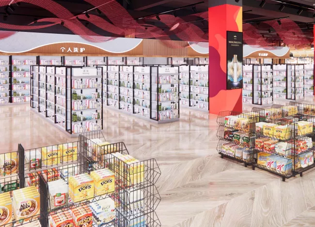 情景式的分區布置,將日常用品與生鮮休食合理擺放,融合細致入微的規劃區間動(dòng)線(xiàn),