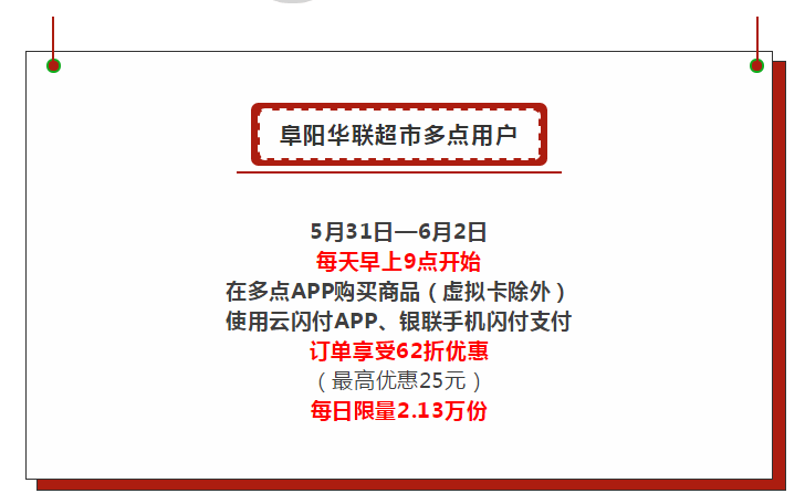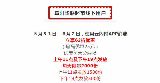 【阜陽(yáng)華聯(lián)】銀聯(lián)62節,3天62折!百萬(wàn)現金等你來(lái)瓜分!
