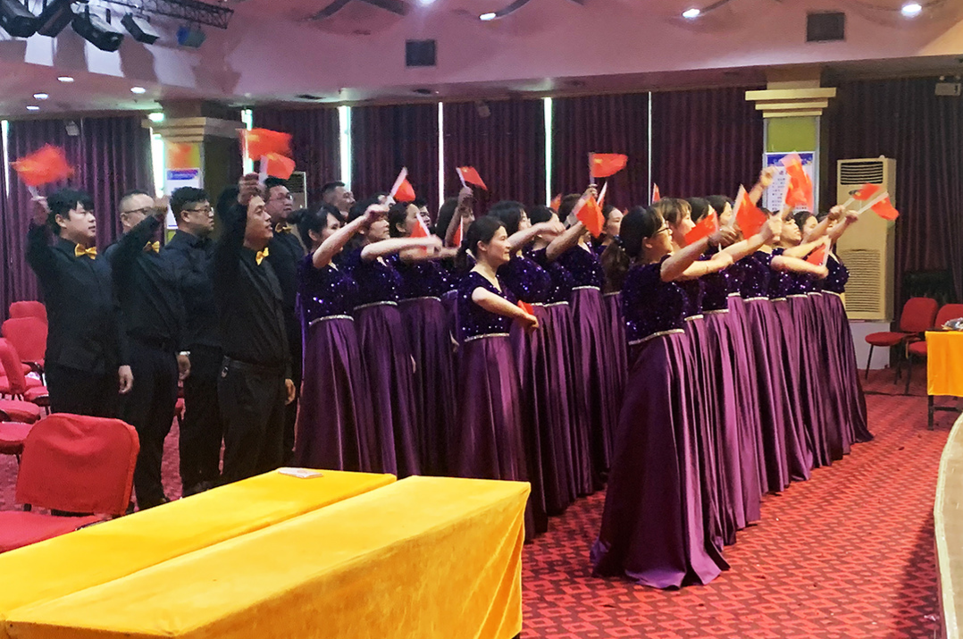 喜迎建黨100周年的歌詠比賽,合唱團成員在緊鑼密鼓地練習大合唱歌曲。