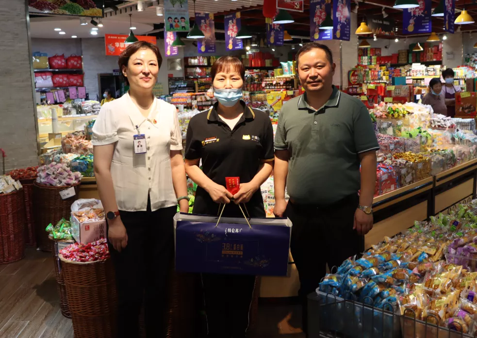 9月14日,慰問(wèn)小組兵分幾路,深入一線(xiàn)門(mén)店,將慰問(wèn)品送至困難職工的手中。