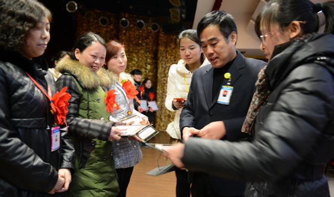 胸前佩戴著(zhù)大紅花,臉上綻放著(zhù)笑容,2014年2月17日下午,阜陽(yáng)華聯(lián)集團十七位員工最受人矚目。因工作表現優(yōu)異,他們被評為了阜陽(yáng)華聯(lián)一月份優(yōu)秀員工,受到了公司的隆重表彰,不但獲得了物質(zhì)獎勵,當天晚上還有幸與公司董事長(cháng)和總經(jīng)理共進(jìn)晚餐。 另外,在此次店長(cháng)擴大會(huì )議上,恒安集團相關(guān)負責人對現場(chǎng)員工,做了一次輕松有趣的知識培訓,常務(wù)副總經(jīng)理樊曉麗對阜陽(yáng)華聯(lián)2014春節經(jīng)營(yíng)狀況,運用詳實(shí)的數據進(jìn)行了細致解讀。