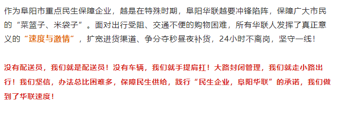 疫情保供的4天4夜,阜陽(yáng)華聯(lián)不斷刷新速度!