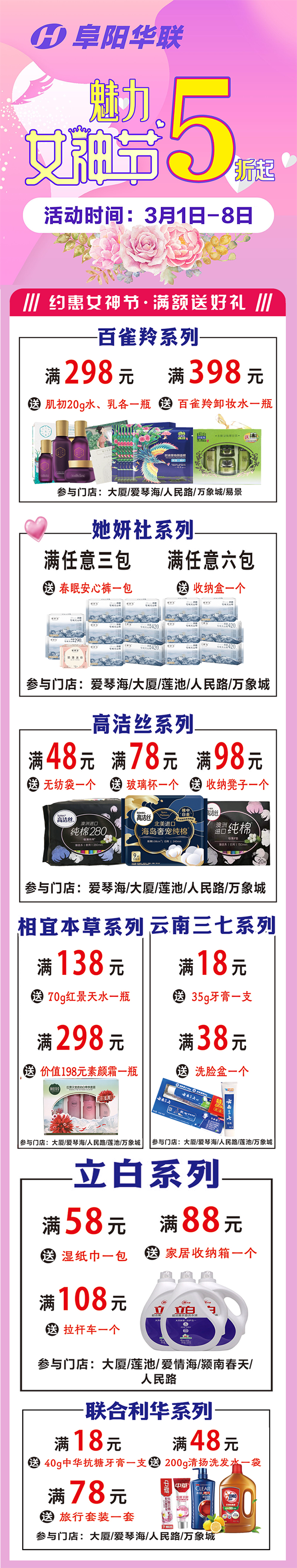 魅力女神節·全場(chǎng)5折起!阜陽(yáng)華聯(lián)花式福利寵愛(ài)你~