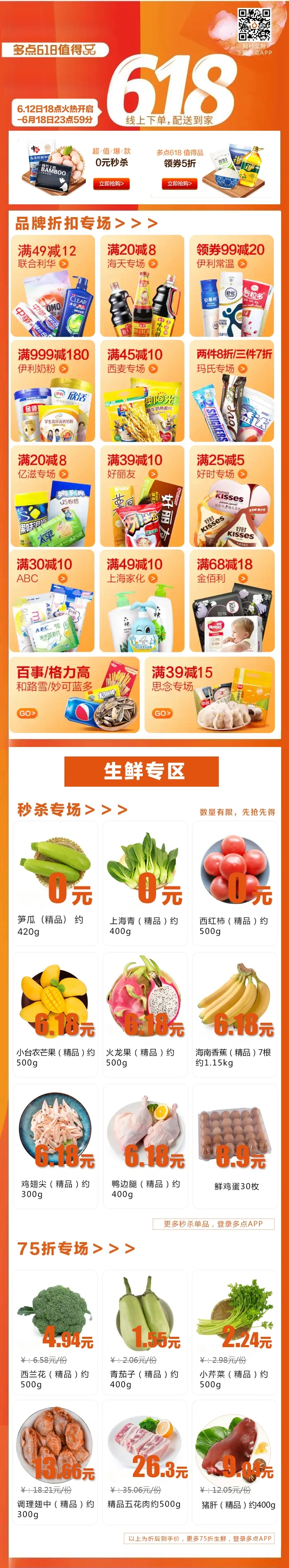 生鮮、常溫0元、6.18元秒殺