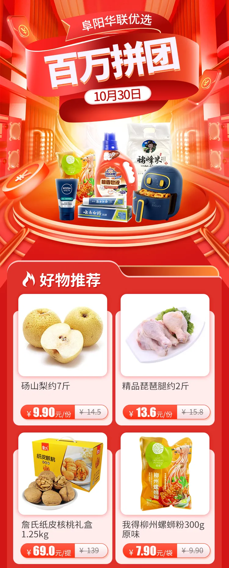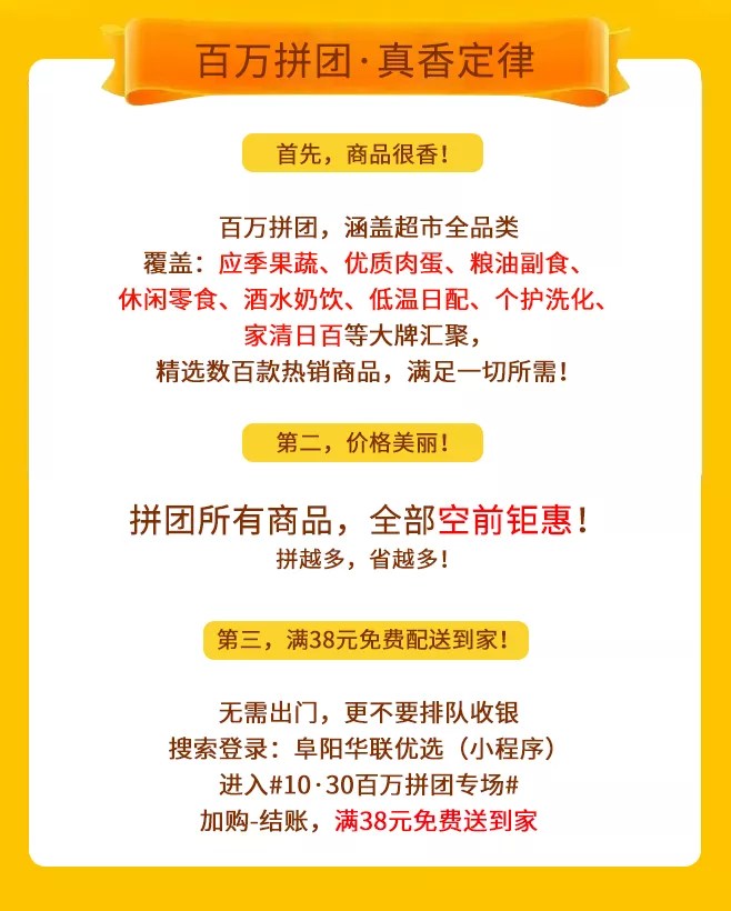 #10·30狂歡來(lái)襲# 阜陽(yáng)華聯(lián)優(yōu)選百萬(wàn)拼團,鉅惠不容錯過(guò)??!